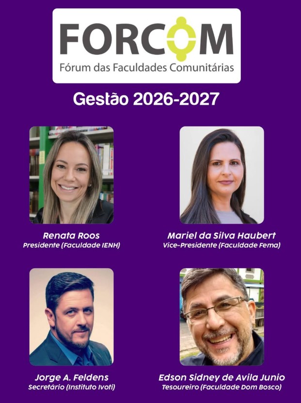 É com grande satisfação que apresentamos a nova diretoria do Fórum das Faculdades Comunitárias (FORCOM), que assume a Gestão 2026-2027! Um time de líderes comprometidos em fortalecer as instituições de ensino superior comunitário.
